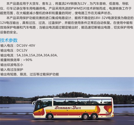 此系列的電源轉(zhuǎn)換器,無論接在汽車上還是其他的12V/24V電瓶上,它都能為家用電器如電視機(jī),影碟機(jī)以及電動(dòng)工具提供安全可靠的交流電源。并設(shè)有多種保護(hù)功能,使您的轉(zhuǎn)換器、電瓶在超負(fù)載下得到有效保護(hù)